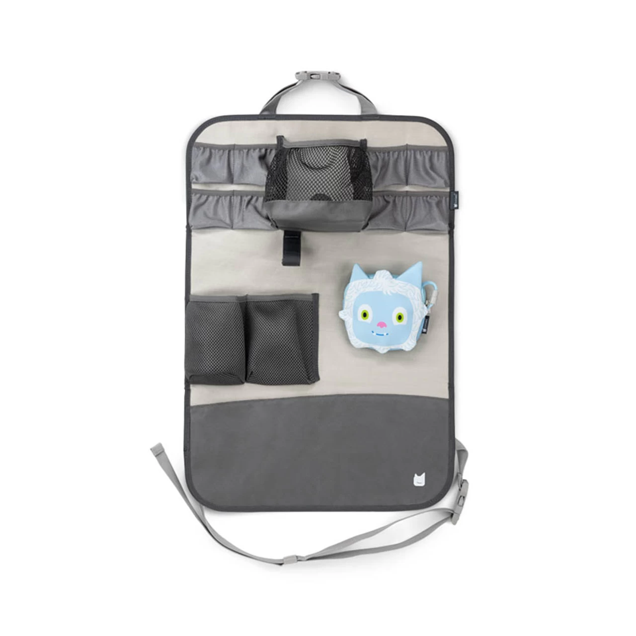 The Organiser is foldable and easily is easily installed in a car by belts that loop around the headrest and car seat. The organiser has dedicated space the for the Toniebox, Tonies, Charging Station and headphones!