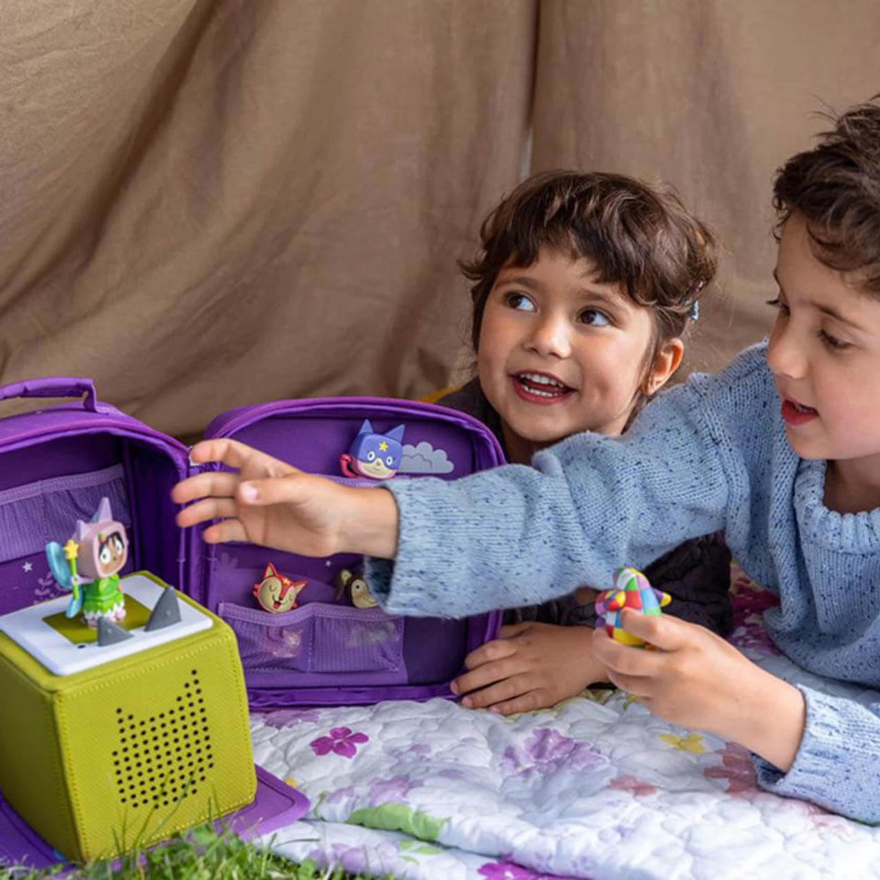 With interior mesh pockets, robust materials, carry handle and a fun design to stylishly protect and carry your Tonies wherever you go – the Tonies Carry Case Max is the ideal travel companion.