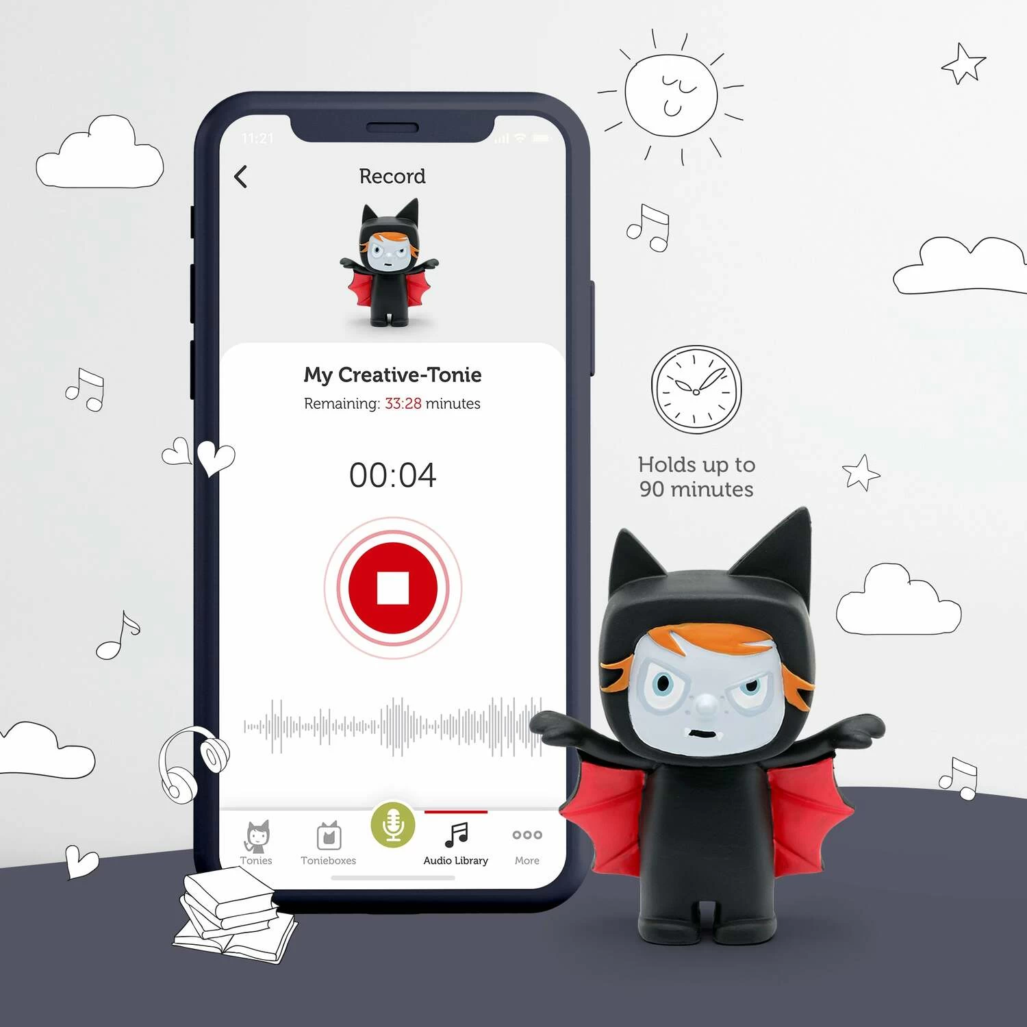 Spooky stories are more fun with a friend. Spooky stories have never been more fun (or adorable) than when they’re being recounted by this tiny Tonie vampire. Creative-Tonies are hand-painted and durable like regular Tonies, but have space for 90 minutes of custom content. Just upload audio using your computer, smartphone or tablet.